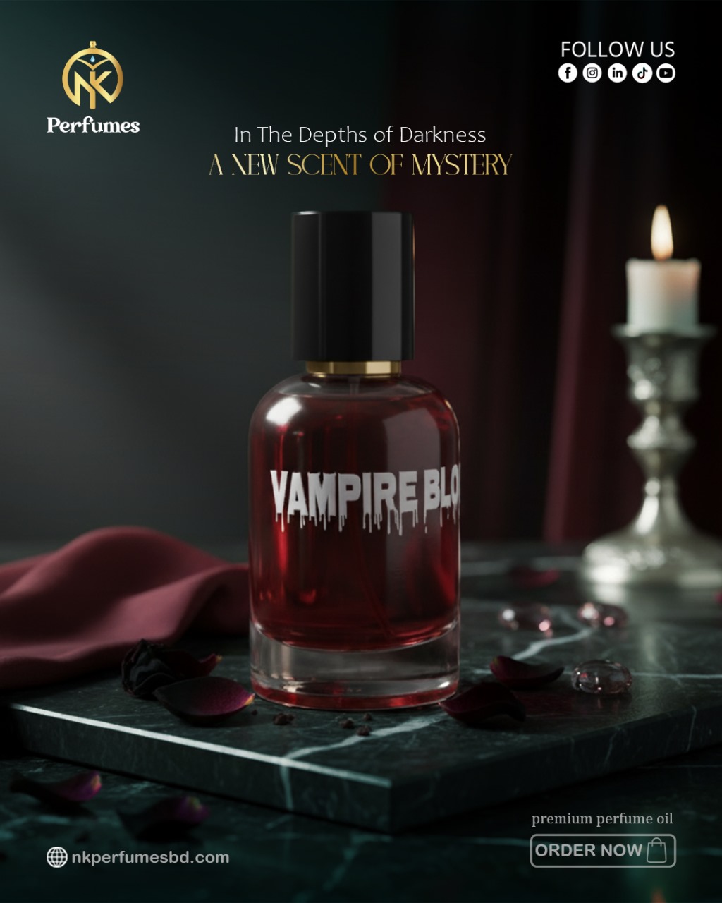 Vampire Blood France এমন এক পারফিউম, যা একবার ব্যবহার করলে যেন এক রহস্যময় জগতে পা রাখেন আপনি। ফ্রান্স থেকে অনুপ্রাণিত, এই ঘ্রাণটি রোমাঞ্চ, ভালবাসা আর অন্ধকারের সম্মিলিত প্রতিচ্ছবি। এক ফোঁটা Vampire Blood পারফিউম যেন এক অদ্ভুত অভিজ্ঞতা—এটি শুধুমাত্র ঘ্রাণ নয়, এক জাদুকরী অনুভূতি। প্রথম স্পর্শে রক্তের ধাতব গন্ধ, সাথে ব্ল্যাক রোজ আর পুরনো কাঠের রহস্যময়তা। যেন কোন নিষিদ্ধ ওয়াইনের নেশা, যা আপনার ব্যক্তিত্বকে করে আরও গাঢ় ও আকর্ষণীয়।